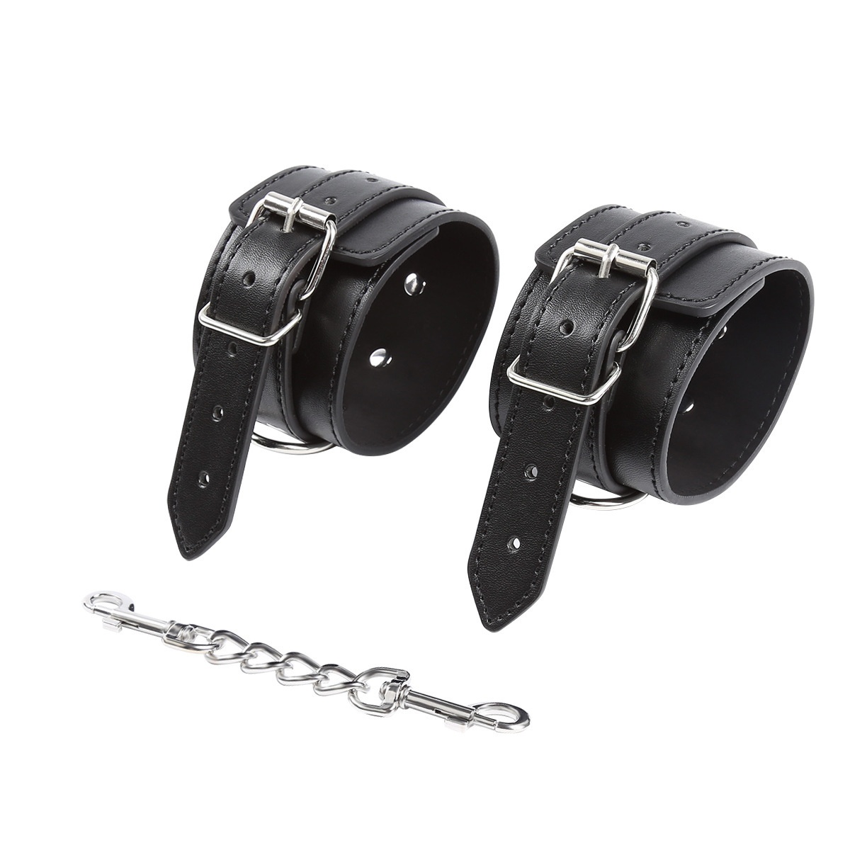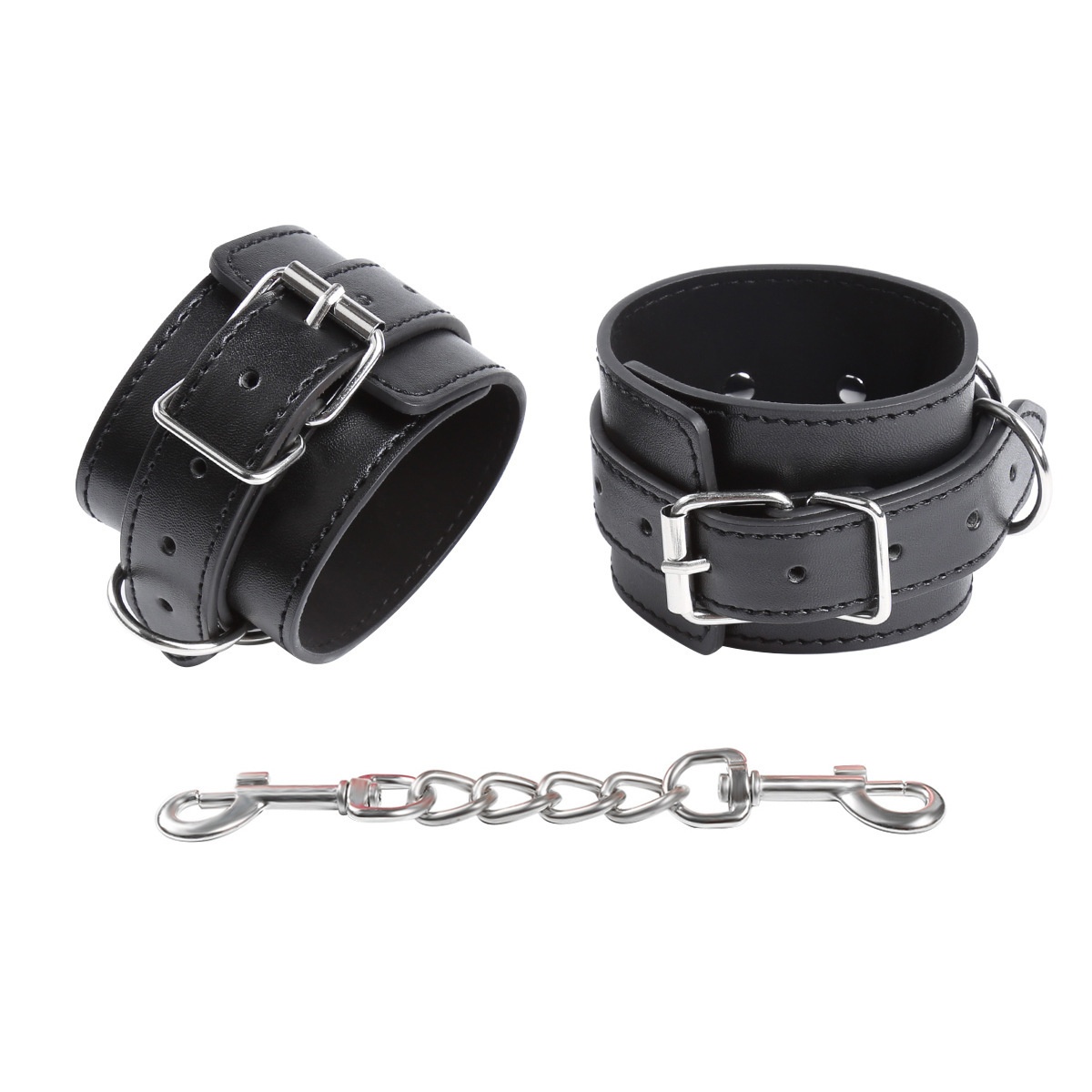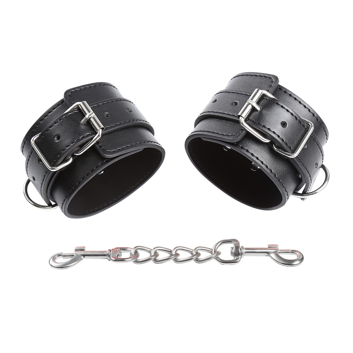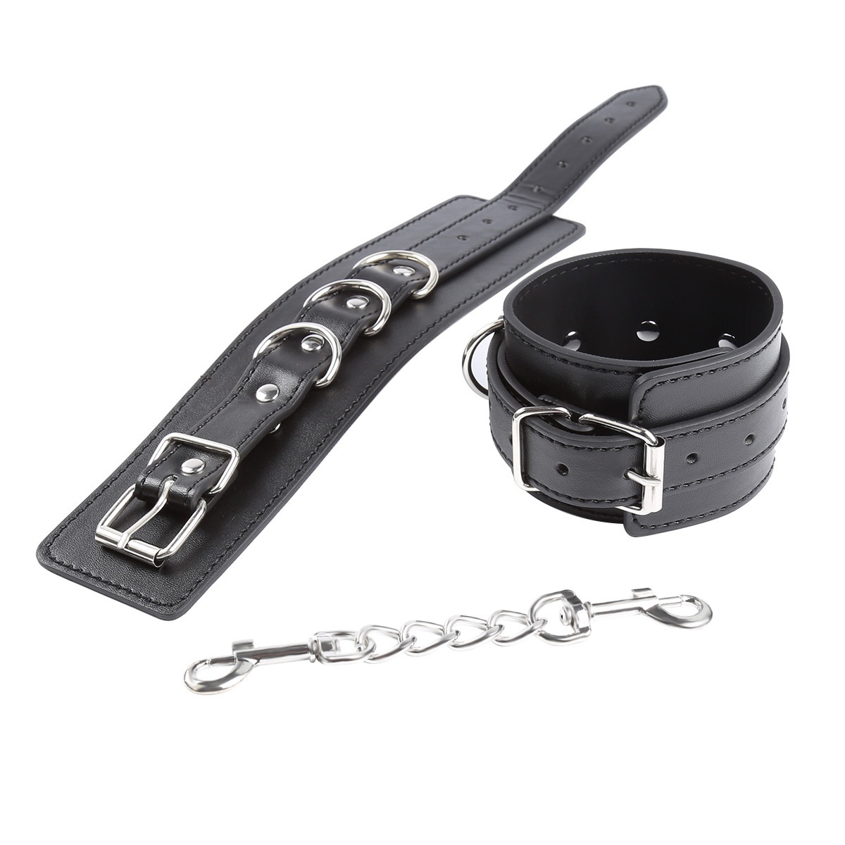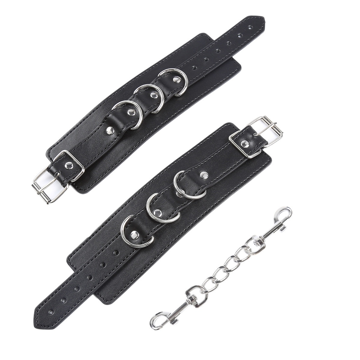 Product information: Color: Black Specification: Fashion Party-three ring leather handcuffs 6976787531751 Material: Leather Category: Sex toy